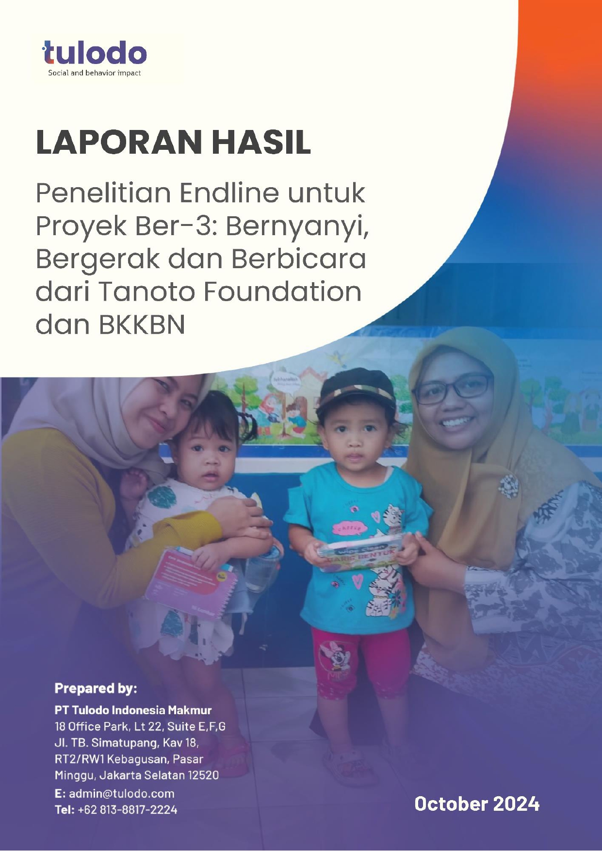 Tulodo conducted the “Ber-3” pilot project with BKKBN and the Tanoto Foundation to apply behavioral science in improving parenting practices for children aged 0–5 years. The project encouraged parents to integrate three key stimulation activities, singing, moving, and talking, into daily routines such as mealtime, bathing, or household chores. Implemented at Posyandu Cempaka in Depok, West Java, Tulodo supported the design of the intervention, including a WhatsApp-based parenting community and activity boxes containing stimulation guides. Tulodo also helped develop a microsite as a resource hub for parents.