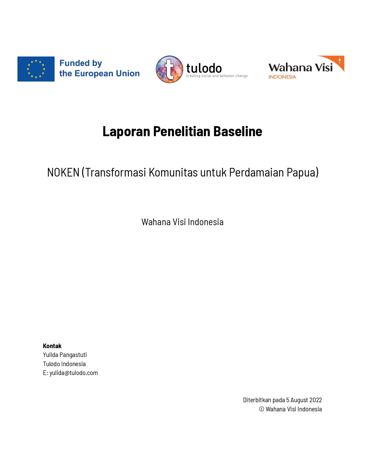 Tulodo conducted the baseline study for the Noken Papua program, which aims to strengthen the capacity of youth (16–30 years old), women, community leaders, and religious leaders in peacebuilding through the adaptation of existing modules developed by WVI and its partners. The study collected key data related to the program’s objectives, expected results, and theory of change outlined in the results framework. Tulodo also assessed the skills and readiness of civil society and faith-based organizations, including women’s and youth groups, in promoting conflict prevention and reconciliation. In addition, the study identified existing community-based peace platforms and dialogue mechanisms used by various stakeholders to inform the design of effective, context-specific interventions for sustaining peace in Papua.